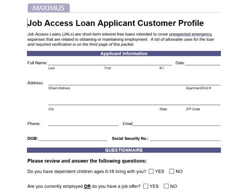 The application process for the Job Access Loan is relatively straightforward. You can apply online or in-person at a local Workforce Solutions office. The application requires you to provide personal information, employment status, and details about the loan amount you are requesting. Once you submit your application, it will be reviewed, and you will be contacted to provide any additional documentation or information necessary.What to Expect During the Loan Approval Process